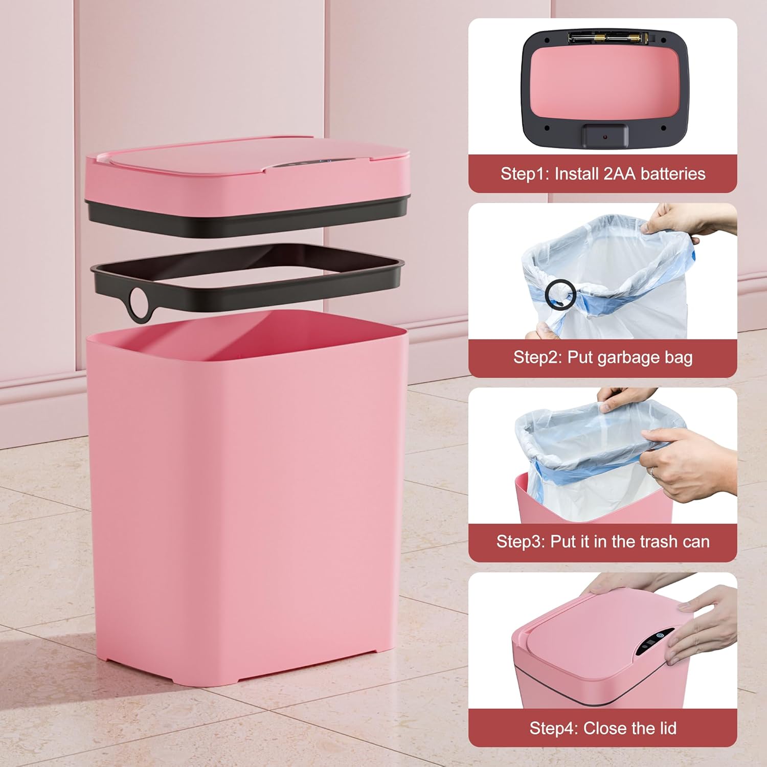 In order to protect the environment, 2 trash cans will be delivered in ONLY 1 package, one inside the other.Alkaline batteries are recommended for best performance.Carbon-zinc batteries are not recommended.